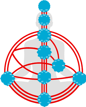 Tus 9 CentrosPartiendo de un diseño particular como el que puedes ver en la imagen que acompaña este texto puedes ver que Hay 9 centros conectados, o no, entre sí por distintos canales. Cada uno de estos centros desarrolla funciones diferentes dentro de nosotros porque tiene asociaciones biológicas directas. En el siguiente gráfico puedes ver los nueve centros representados: